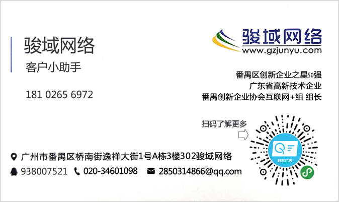 廣州駿域網(wǎng)絡(luò)科技有限公司成立于2005年,是一支由眾多具有多年實(shí)踐經(jīng)驗(yàn)的專業(yè)人士組成的高新技術(shù)團(tuán)隊,專為企業(yè)提供網(wǎng)站建設(shè)、全網(wǎng)營銷、郵箱等服務(wù),我們擁有嚴(yán)謹(jǐn)?shù)某绦蜷_發(fā)人員、專業(yè)的美工設(shè)計、隨時為您效勞的售后服務(wù)人員,團(tuán)隊人數(shù)達(dá)一百多人。目前我們已經(jīng)榮幸的為廣州眾多知名企業(yè)提供了包括網(wǎng)站建設(shè)、手機(jī)網(wǎng)站、小程序、企業(yè)軟件開發(fā)等多種基于互聯(lián)網(wǎng)技術(shù)的服務(wù)。 通過長期積累,駿域網(wǎng)絡(luò)目前已經(jīng)擁有50000多家客戶。